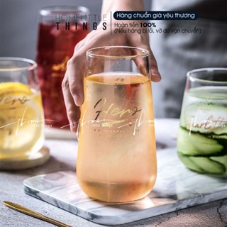 Ly, cốc thủy tinh uống nước cà phê kiểu dáng trụ tròn có họa tiết in chữ