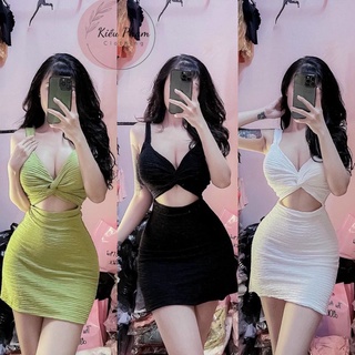 Đầm body 2 dây bản to khoét bụng soắn ngực có mút( kèm video thật)