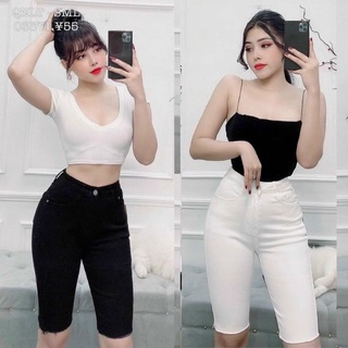 Quần short kaki jeans thể thao lưng cao co giãn tốt