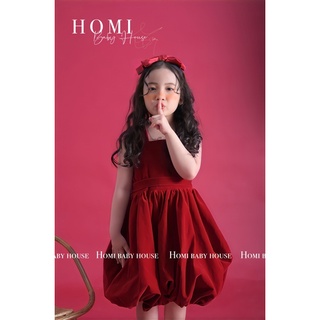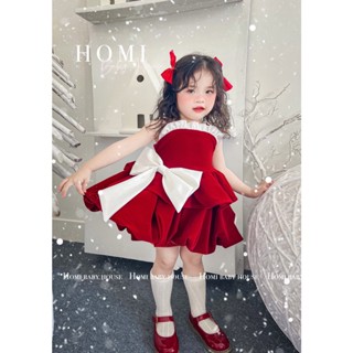 Váy công chúa cho bé gái Sana Dress- Nhung đỏ 2 dây nơ trắng Váy đầm bé gái HOMI BABY HOUSE đi tiệc dạo phố