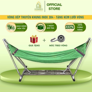 Võng Xếp Thuyền Khung Vuông HOMIE Inox 304 Phi 40 Không Rỉ Sáng Bóng - ( Chịu trọng lực 250kg + Kèm ảnh và video thật )