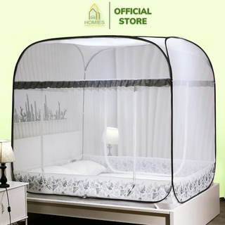 Mùng Chụp Tự Bung HOMIES Đỉnh Vuông Chân Viền Chống Muỗi Cao Cấp