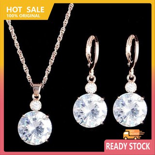 Set dây chuyền và hoa tai mặt kim cương nhân tạo hình tròn thanh lịch cho nữ