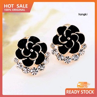 Bông tai hợp kim hình hoa trà đính đá lấp lánh