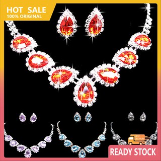 (Hàng Mới Về) Bộ vòng cổ + Bông Tai Đính Đá Pha Lê Hình Giọt Nước Sang Trọng