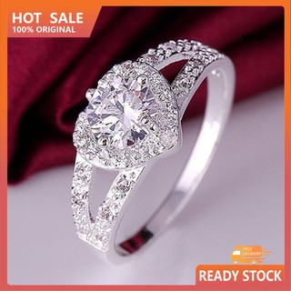 Nhẫn mạ bạc 925 thiết kế mặt trái tim đinh đá sang trọng cho nữ
