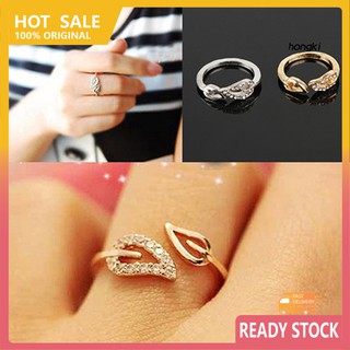 Nhẫn hở thiết kế hình lá khảm đá sang trọng cho nữ