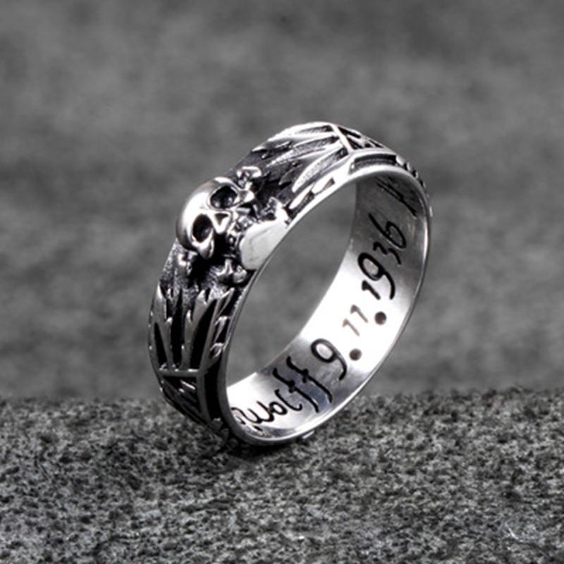 Nhẫn thép không gỉ khắc hình đầu lâu thời trang cho nam cỡ 7-12