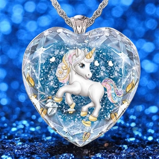 Vòng cổ Mặt Hình Ngựa Một Sừng Đính Đá Pha Lê Xanh Thời Trang