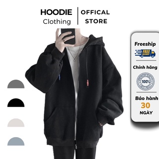 Áo Khoác Kéo Khóa Nam, Nữ Hoodie Basic Unisex Nỉ From Rộng Màu Đen HDKK950