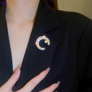 Ghim Cài Áo Hình Mặt Trăng Đính Ngọc Trai Nhân Tạo Thời Trang Cho Nam Nữ