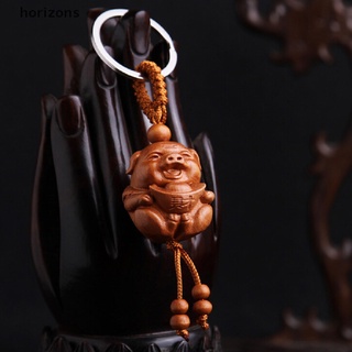 Móc khóa mặt hình chú heo bằng gỗ chạm khắc may mắn đáng yêu