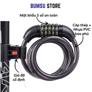 Khóa dây xe máy xe đạp khóa nhà chống trộm dài 1,2m tích hợp mật khẩu 5 số an toàn mang theo