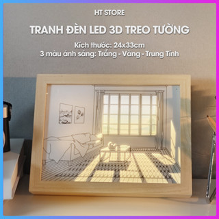 Tranh đèn Led 3D treo tường 24x33cm 3 màu ánh sáng - Tranh Decor phòng ngủ, phòng khách, góc học tập, bàn làm việc