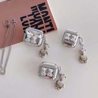 Vỏ Bảo Vệ Hộp Sạc Tai Nghe Bluetooth airpods 1/2 pro Bằng tpu Mềm Hình Gấu Màu Bạc Kèm Móc Khóa