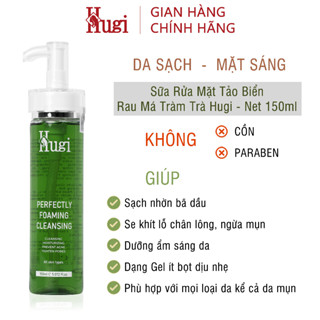 Sữa Rửa Mặt Tảo Biển Rau Má Tràm Trà Gel Ít Bọt Sạch Nhờn Kiềm Dầu Dưỡng Ẩm Trắng Da Ngừa Mụn Chính Hãng HuGiBeauty150ml