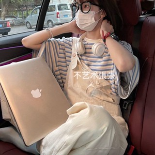 Set Áo Thun Ngắn Tay Sọc Ngang + Đầm Yếm Form Rộng Thời Trang Dành Cho Nữ