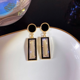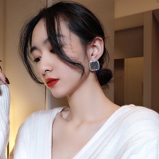 Bông Tai Mạ Bạc 925 Hình Vuông Màu Đen Phong Cách Hàn Quốc Đơn Giản