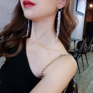 Khuyên Tai Dáng Dài Đính Đá Phối Tua Rua Đơn Giản Thời Trang Mới Cho Nữ