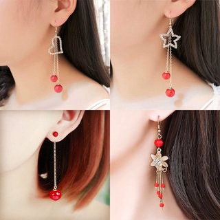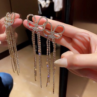 Bông Tai Dài Hình Nơ Tua Rua Đính Đá Thời Trang Đa Năng