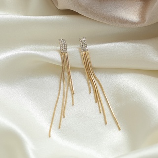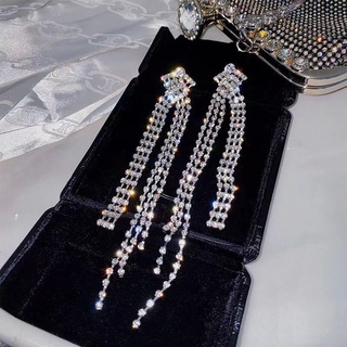 Bông Tai Mạ Bạc 925 Dáng Dài Đính Đá Sang Trọng Thời Trang Phong Cách Hàn Quốc