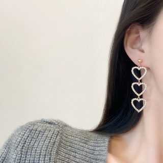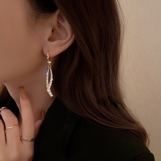 Bông Tai Mạ Bạc 925 Dáng Dài Đính Kim Cương Toàn Diện Phong Cách Hàn Quốc
