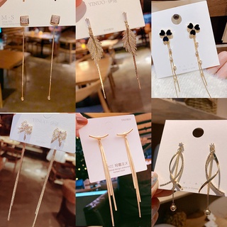Bông Tai Mạ Bạc 925 Dáng Dài Đính Kim Sa Tua Rua Thời Trang Hàn Quốc