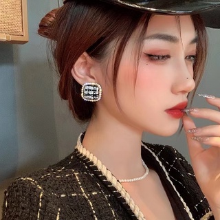 Hàn Quốc Dongdaemun I Khuyên Tai Đính Ngọc Trai Hình Vuông Nhỏ Tinh Tế Lấp Lánh
