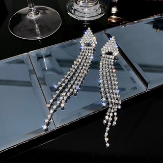 Bông Tai Mạ Bạc 925 Hình Kim Cương Tua Rua Phong Cách Hàn Quốc