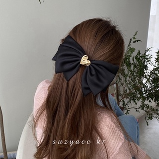Kẹp Tóc Nơ Đen Bằng Satin Trái Tim Kim Loại Tinh Tế Và Thanh Lịch