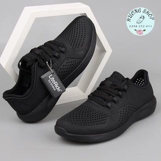 Giày nhựa Croc.s Literide buộc dây màu đen,giày đi mưa siêu chống thấm, chống trơn trượt cho nam nữ