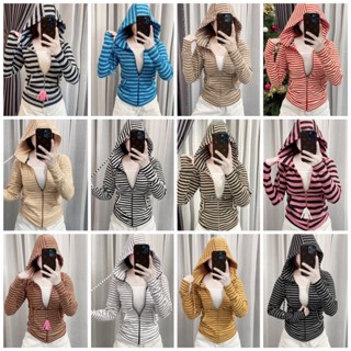 Áo khoác sọc dệt chống nắng nón hai lớp xỏ ngón ( kèm túi trong)