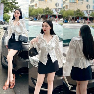 SET ÁO TRẮNG LỖ CỔ TIM XẺ TÀ + CHÂN VÁY