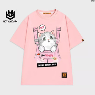 Áo thun nữ tay lỡ HY KOREA Yếm hồng mèo 1234 form rộng
