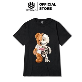 Áo Thun Tay Lỡ Form Rộng Cotton 100% Unisex In Hình Xương Gấu Hello 208 - HY Korea.