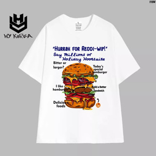 Áo Thun Tay Lỡ Cotton 100 Nam Nữ HAMBURGER 1194 HY KOREA