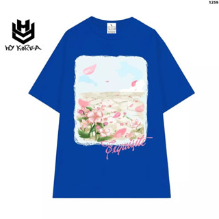 Áo Thun HY KOREA Họa tiết hoa Exquisite 1259 Unisex Form Rộng Cotton 100 Tay Lỡ