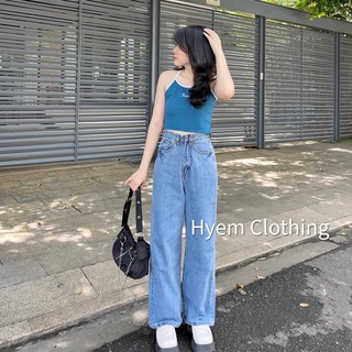 [NEW] Quần jean nữ lưng siêu cao dáng ống rộng màu xanh nhạt, hàng cao cấp - Ms04