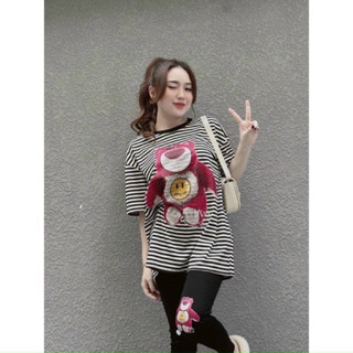 Set áo phông rộng gấu dâu kèm quần legging siêu xinh