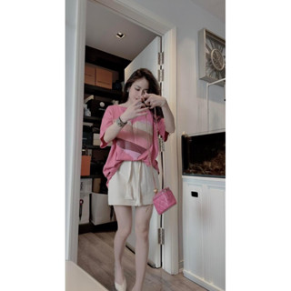 Set áo thun kèm chân váy hồng có belt luôn ạ