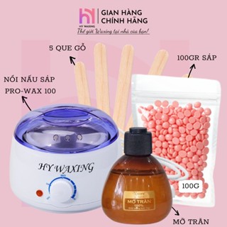 [CHE TÊN] Combo Nồi Nấu Sáp Wax Lông ProWax200 HY WAXING + 100gr Sáp Cao Cấp + 75gr Mỡ Trăn Tặng Que
