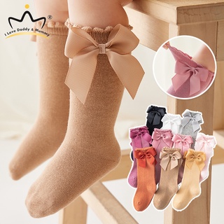 Vớ Cotton Mềm Cao Đến Đầu Gối Chống Trượt Màu Trơn Đính Nơ Thời Trang Thu Đông Cho Bé Sơ Sinh