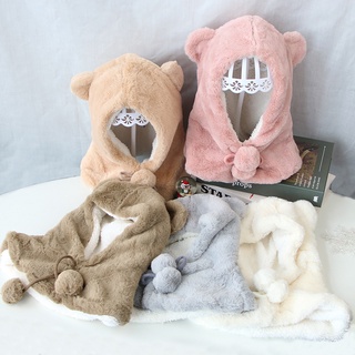 Mũ Len San Hô Dày Dặn Giữ Ấm Tai Đính Nơ Hoạt Hình Dễ Thương Phong Cách Hàn Quốc Chống Gió Mùa Đông Cho Bé