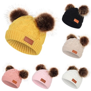 Mũ Beanie Dệt Kim Mềm Mại Co Giãn Giữ Ấm Tai Thời Trang Thu Đông Cho Bé