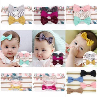 Set 3 băng đô thun đính nơ xinh xắn cho bé gái 0-36 tháng tuổi