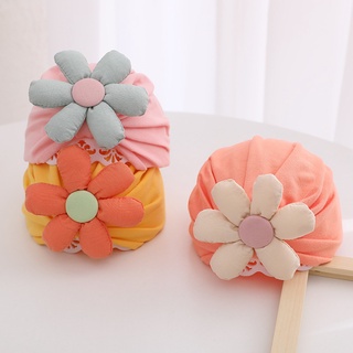 Mũ trùm đầu vải cotton mềm phối nơ in hoa cho bé trai và bé gái