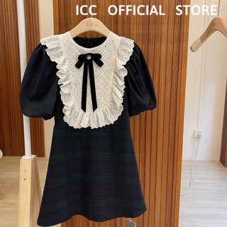 [ORDER] Đầm Dáng Ôm Chiết Eo Đính Nơ - Váy Tay Phồng Kẻ Ca Rô Màu Xanh Order Taobao VD083 ICC Official Store