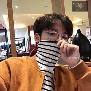 Áo len trắng sọc đen cổ lọ