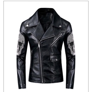 Áo khoác da cao cấp nạm đá hình đầu lâu cá tính