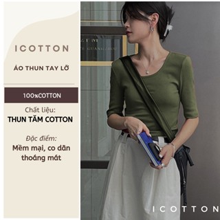 Áo cổ vuông nữ ❤️ICOTTON❤️ áo cổ viền phom ôm 100% cotton kiểu dáng trẻ trung